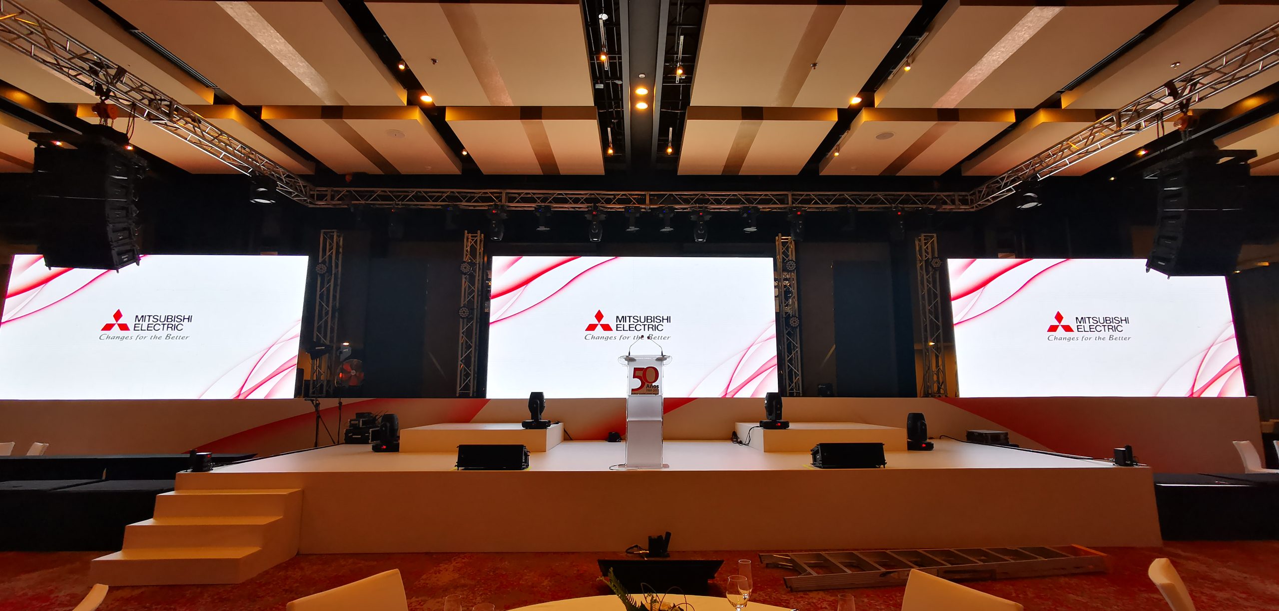 Realizamos eventos completos con pantallas LED de alta calidad, sonido envolvente, iluminación profesional y montaje de escenografía a medida. Ofrecemos tarimas, estructuras y todos los elementos necesarios para asegurar el éxito de tu evento. Nuestro equipo se encarga de cada detalle, garantizando una experiencia única y memorable.